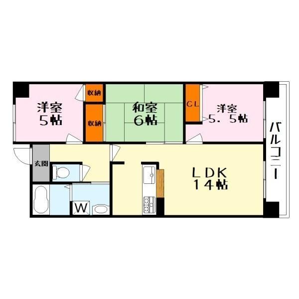 | 築年月 | 1998年3月 | 間取り | 3LDK( LDK14畳/洋室5.5畳/洋室5畳/和室6畳 ) | 専有面積 | 64.88m2 |