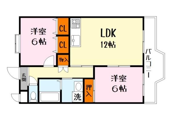 築年月 1995年10月  間取り 2LDK( LDK12畳/洋室6畳/洋室6畳 ) 専有面積 58.5m2