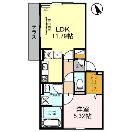 築年月 2021年12月  間取り 1LDK( LDK11.79畳/洋室5.32畳 ) 専有面積 43.41m2