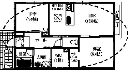 | 築年月 | 2022年3月 | 間取り | 2LDK( LDK13.8畳/洋室6.4畳/洋室6.4畳 ) | 専有面積 | 66m2 |
