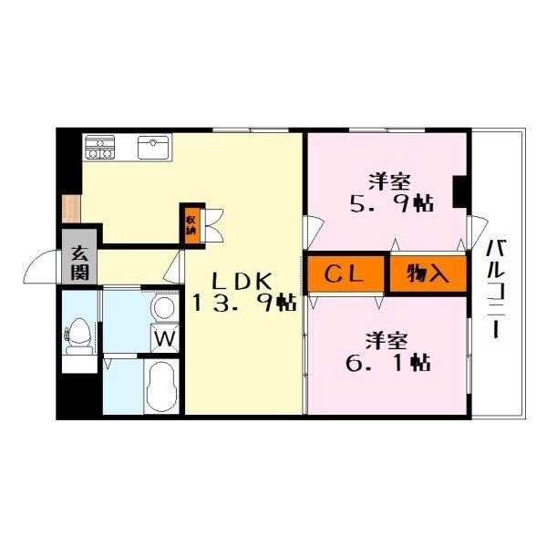 築年月 1994年12月  間取り 2LDK( LDK13.9畳/洋室6.1畳/洋室5.9畳 ) 専有面積 57.33m2