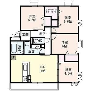 築年月 2016年2月  間取り 4LDK( LDK14畳/洋室6.6畳/洋室6.2畳/洋室6畳/洋室4.5畳 ) 専有面積 85.86m2