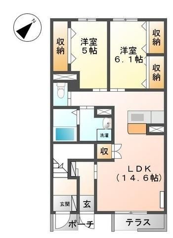 | 築年月 | 2012年3月 | 間取り | 2LDK( LDK14.6畳/洋室6.1畳/洋室5畳 ) | 専有面積 | 58.81m2 |