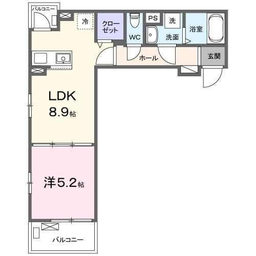 1LDK( LDK8.9畳/洋室5.2畳 ) |