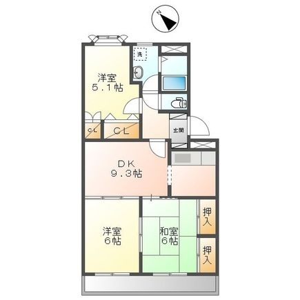 築年月 2000年3月  間取り 3DK( DK9.3畳/和室6畳/洋室6畳/洋室5.1畳 ) 専有面積 58m2