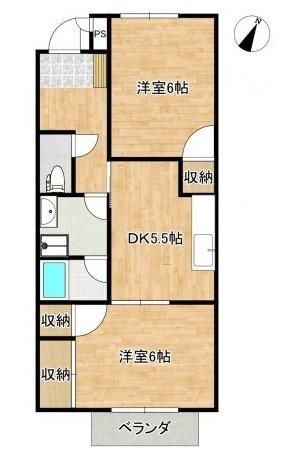 築年月 1997年4月  間取り 2DK( DK5.5畳/洋室6畳/洋室6畳 ) 専有面積 46.04m2