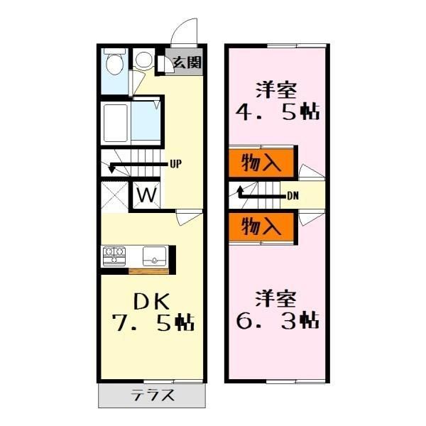 | 種別 / 構造 | アパート / S造(鉄骨造) | 主要採光面 | 南西 | 所在階 / 階数 | 1階 / 2階 |