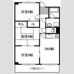 | 築年月 | 1995年4月 | 間取り | 3DK( LDK8畳/洋室6畳/和室6畳/洋室6畳 ) | 専有面積 | 58.8m2 |