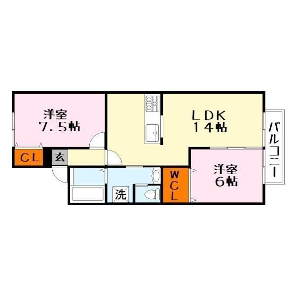 | 築年月 | 2008年4月 | 間取り | 2LDK( LDK14畳/洋室7.5畳/洋室6畳 ) | 専有面積 | 59.62m2 |