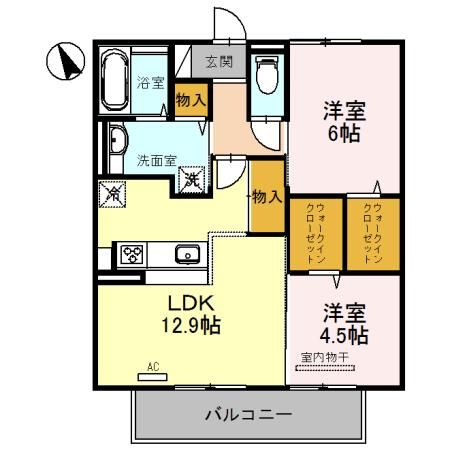 | 築年月 | 2018年1月 | 間取り | 2LDK( LDK12.9畳/洋室6畳/洋室4.5畳 ) | 専有面積 | 60.16m2 |