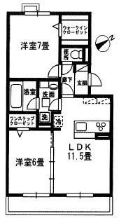| 築年月 | 2014年10月 | 間取り | 2LDK( LDK11.5畳/洋室7畳/洋室6畳 ) | 専有面積 | 58.2m2 |