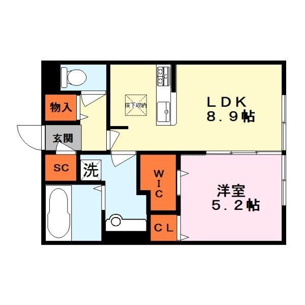| 築年月 | 2017年8月 | 間取り | 1LDK( LDK8.9畳/洋室5.2畳 ) | 専有面積 | 40.07m2 |