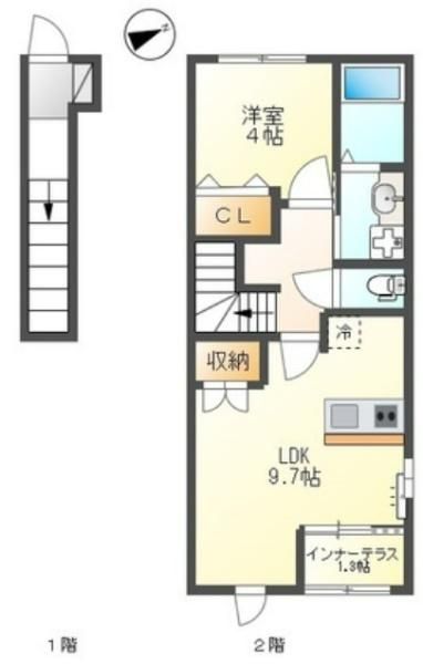 1LDK( LDK9.7畳/洋室4畳 ) |