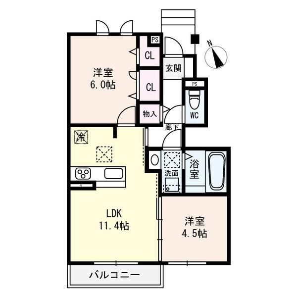 2LDK( LDK11.4畳/洋室6畳/洋室4.5畳 ) |