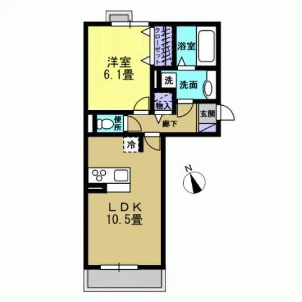 | 築年月 | 2016年2月 | 間取り | 1LDK( LDK10.5畳/洋室6.1畳 ) | 専有面積 | 42.63m2 |