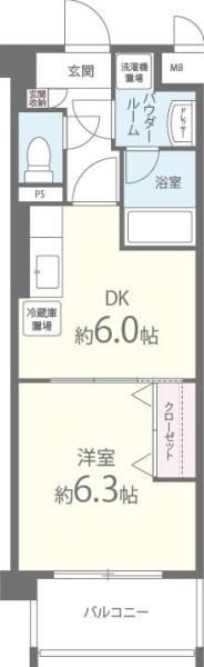 | 築年月 | 2009年2月 | 間取り | 1DK( DK6畳/洋室6.3畳 ) | 専有面積 | 31.74m2 |