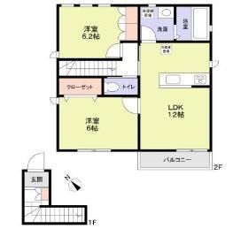 | 築年月 | 2023年9月 | 間取り | 2LDK( LDK12畳/洋室6.2畳/洋室6畳 ) | 専有面積 | 61.69m2 |