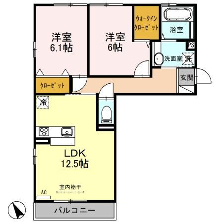 | 築年月 | 2019年5月 | 間取り | 2LDK( LDK12.5畳/洋室6.1畳/洋室6畳 ) | 専有面積 | 60.43m2 |