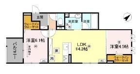 2LDK( LDK14.2畳/洋室4.5畳/洋室6.1畳 ) |