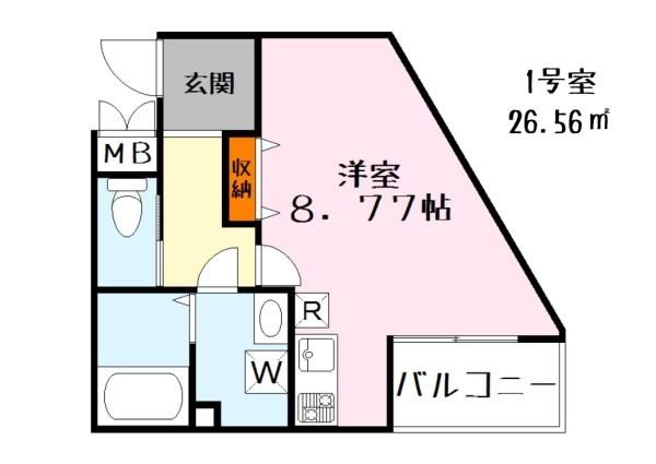 - 間取り:ワンルーム / 専有面積:26.56m2