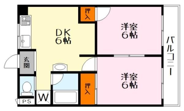 | 築年月 | 1990年12月 | 間取り | 2DK( DK6畳/和室6畳/和室6畳 ) | 専有面積 | 38.88m2 |