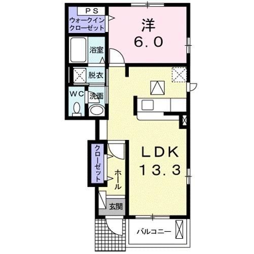 | 築年月 | 2017年3月 | 間取り | 1LDK( LDK13.3畳/洋室6畳 ) | 専有面積 | 46.83m2 |