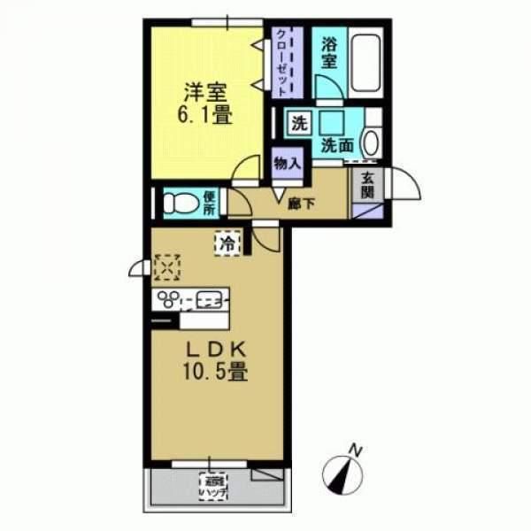 築年月 2014年8月  間取り 1LDK( LDK10.5畳/洋室6.1畳 ) 専有面積 42.63m2