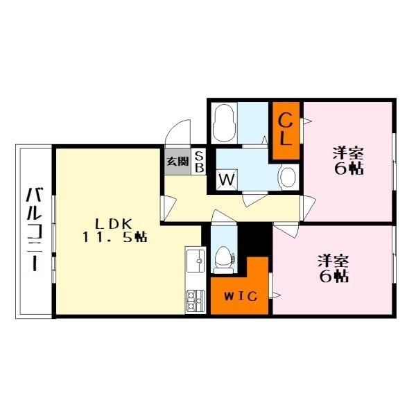 築年月 2010年4月  間取り 2LDK( LDK11.5畳/洋室6畳/洋室6畳 ) 専有面積 58.18m2