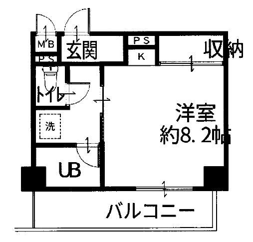 築年月 1991年9月  間取り ワンルーム( 洋室8.2畳 ) 専有面積 25.76m2