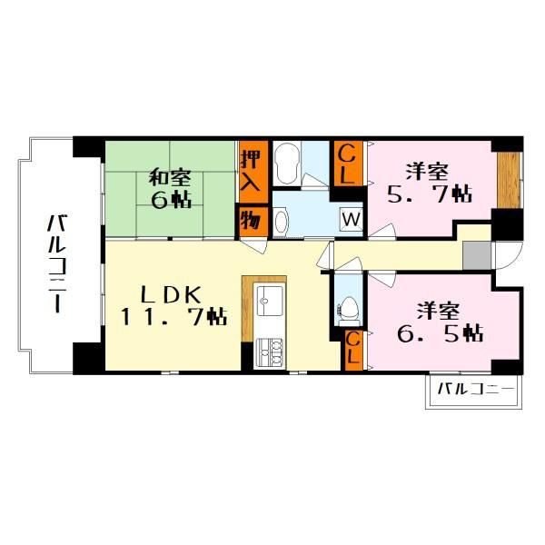 築年月 2002年9月  間取り 3LDK( LDK11.7畳/洋室6.5畳/洋室5.7畳/和室6畳 ) 専有面積 66.95m2