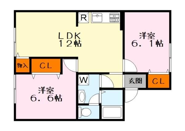 築年月 1990年1月  間取り 2LDK( LDK12畳/洋室6.6畳/洋室6.1畳 ) 専有面積 53.46m2