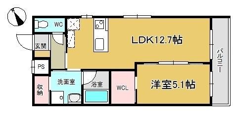 築年月 2013年9月  間取り 1LDK( LDK12.7畳/洋室5.1畳 ) 専有面積 44.16m2