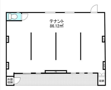 | 備 考 | 内装スケルトン お客様駐車場(隣のテナントと共有)9台16500円/月 従業員用駐車場3300円/1台 店舗駐車場追加分5500円/1台 飲食店可 |