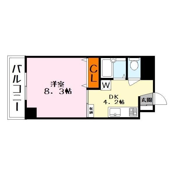 築年月 1998年3月  間取り 1DK( 洋室8.3畳/DK4.2畳 ) 専有面積 33.06m2