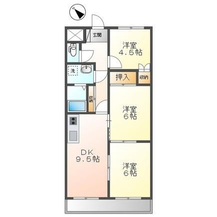 築年月 2000年4月  間取り 3DK( DK9.5畳/洋室6畳/洋室6畳/洋室4.5畳 ) 専有面積 58.32m2