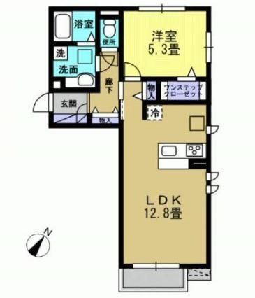 築年月 2014年5月  間取り 1LDK( LDK12.8畳/洋室5.3畳 ) 専有面積 44.85m2